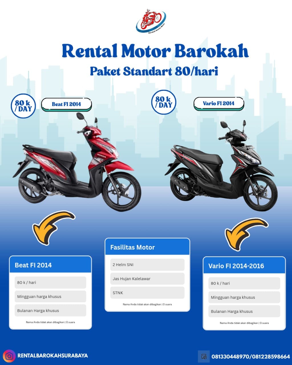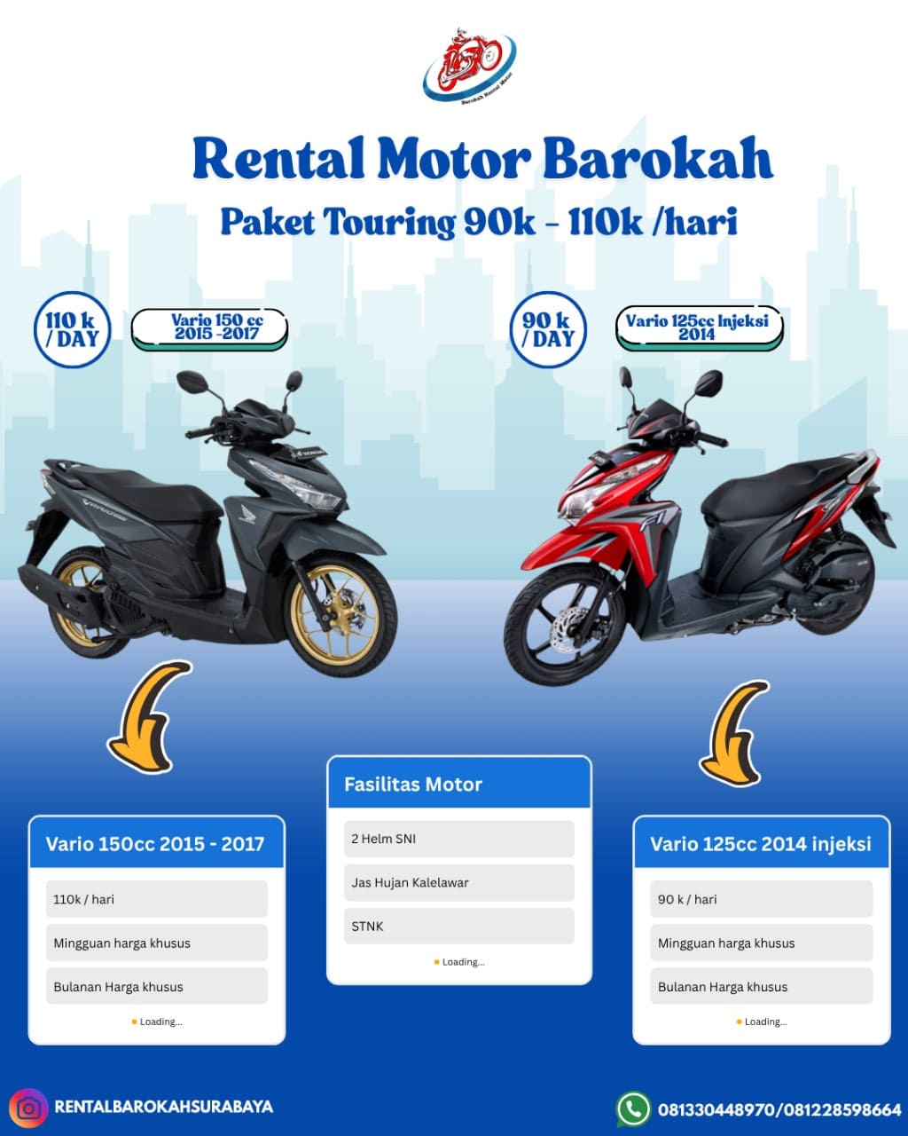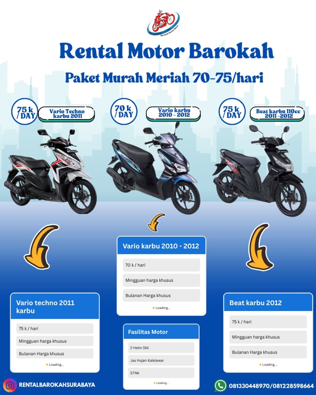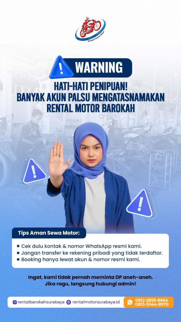 Selain nomor tersebut Barokah Rental Motor tidak bertanggung jawab atas booking unit serta pembayaran setiap transaksi yang mengatasnamakan Barokah Rental Motor